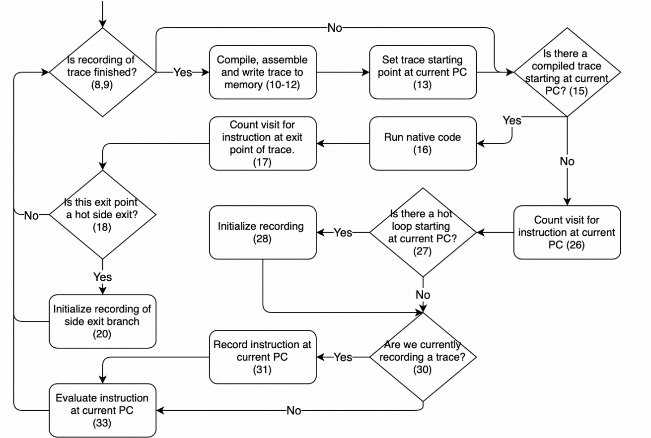 Lua 开发者通常听说或使用过 LuaJIT,但是可能因为种种原因未能理解其工作原理,在这里分享一篇 Jakob Erlandsson 和 Simon Kärrman 的硕士毕业论文,TigerShrimp: An Understandable Tracing JIT Compiler,该论文讲述了如何为 JVM 开发一个 Tracing JIT,并附带了源码以及可视化工具。下文将简要剖析一些其实现原理。