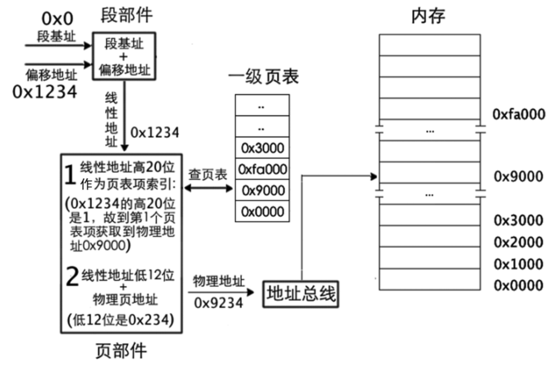 段基址先去查进程的段表里面 找到段描述符 找到段的起始地址和其长度 MMU(存储管理单元) 取出长度和偏移作比较 若非法 则内存异常 若合法 MMU 再利用其段基址和段偏移相加(不开分页的情况) 找到实际要访问的物理内存