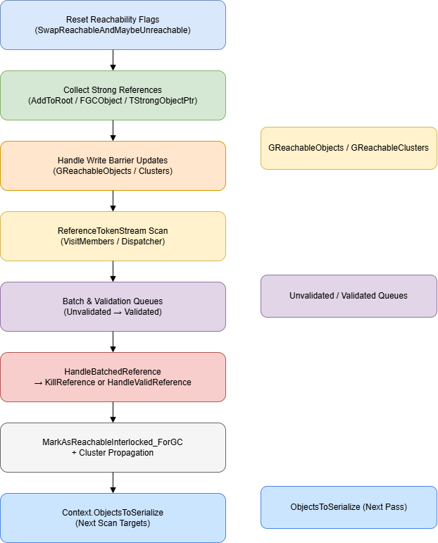 从 UE5.4 起,引擎引入 增量扫描:将可达性分析拆分到多帧执行,平滑每帧的 GC 开销。这引出了一个核心问题: